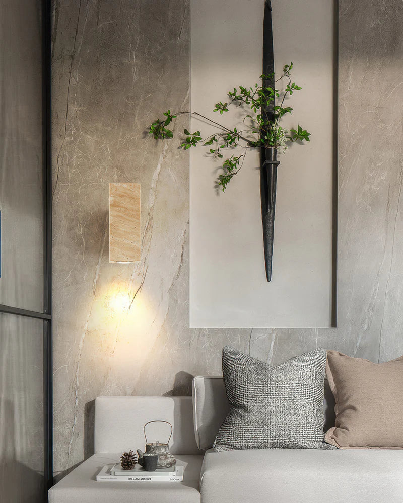 Transformez votre espace avec la lampe SVÄRDA, une création nordique inspirée du wabi-sabi japonais. Sa forme épurée et son corps en travertin jaune apportent une élégance intemporelle et une atmosphère apaisante, idéale pour les intérieurs comme pour les extérieurs.